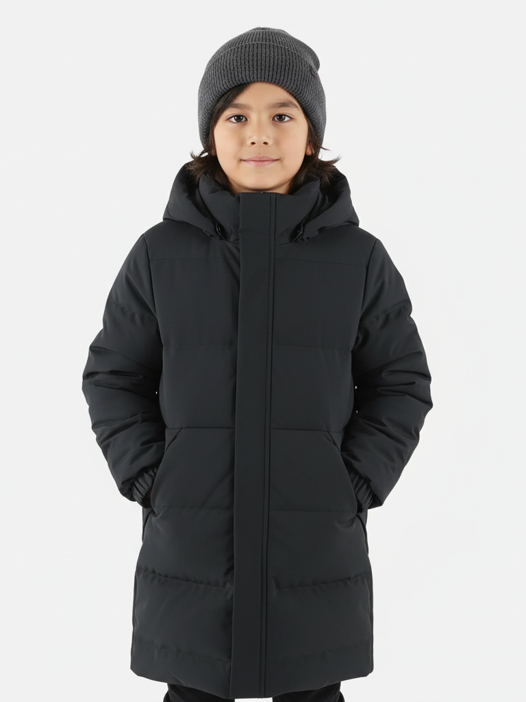 Это длинное пуховое пальто создано для активных детей, которые не боятся морозов. Прочный водо- и ветронепроницаемый материал надёжно защищает от снега и ветра, сохраняя тепло и комфорт даже в холодную погоду. Наполнитель из пуха и пера равномерно распределяет тепло, создавая уют и обеспечивая лёгкость при носке. Двухходовая молния делает движения свободными, а функциональные детали — съёмный безопасный капюшон, эластичные манжеты и удобные карманы на молнии — дарят дополнительную защиту и удобство. Специальная грязе- и водоотталкивающая обработка помогает пальто оставаться чистым дольше.
