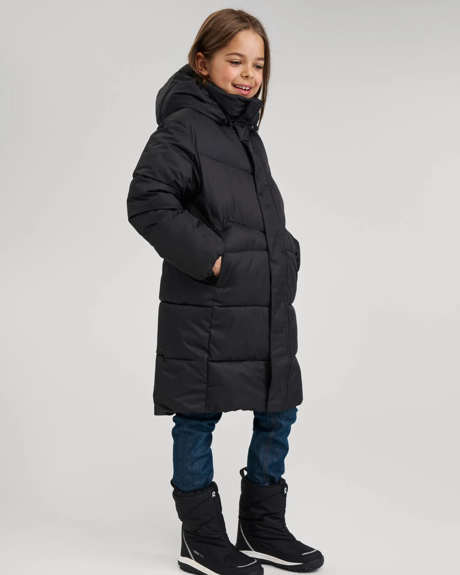 Куртка изготовлена из ветронепроницаемого и дышащего материала с водо- и грязеотталкивающей поверхностью — поэтому детям всегда будет тепло и сухо во время зимних развлечений. Наша классическая модель со съемным капюшоном надежно защищает от зимних ветров. Благодаря подкладке из гладкого полиэстера ее легко надевать. Грязеотталкивающий материал также можно сушить в сушильной машине. Эта куртка дополнена двумя карманами на молнии для хранения всех важных вещей, например, ключей или телефона.